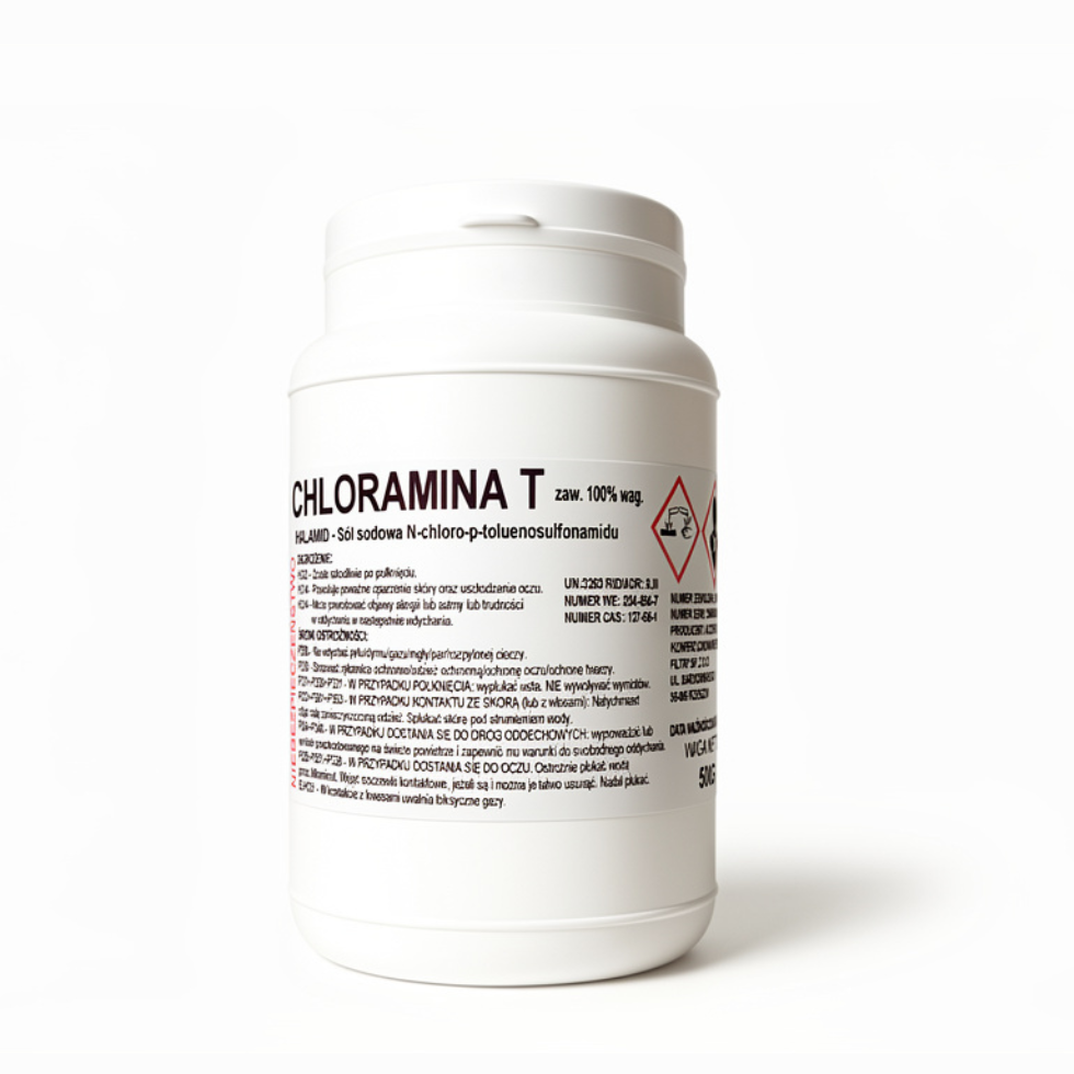 Chloramina T to profesjonalny proszek dezynfekujący o stężeniu 100% substancji czynnej, przeznaczony do użytku prywatnego i publicznego. Idealny do dezynfekcji powierzchni mających kontakt z żywnością. Sprawdzony środek biobójczy stosowany w gastronomii, gospodarstwach domowych i obiektach użyteczności publicznej.
