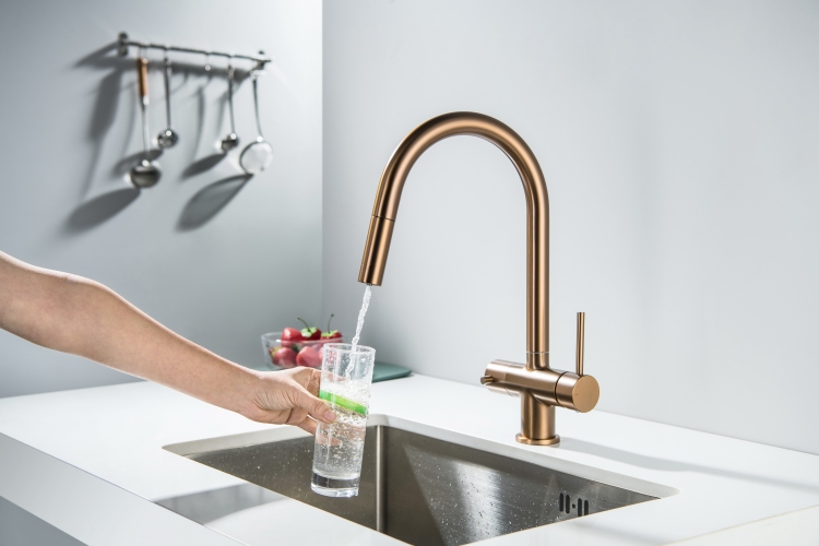 Nowoczesna bateria kuchenna Blue Water CYRUS Miedź z możliwością podłączenia do filtra wody