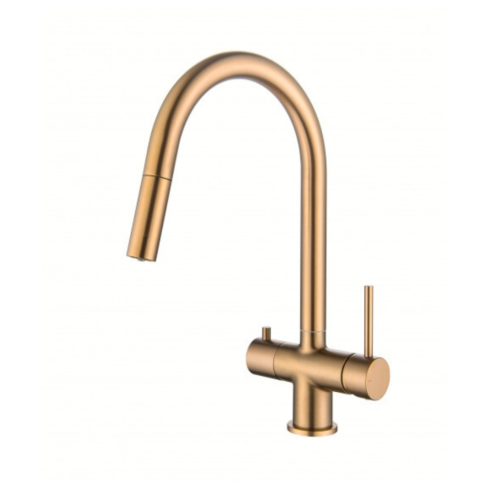 Trójdrożna bateria kuchenna Blue Water CYRUS Miedź z wyciąganą wylewką