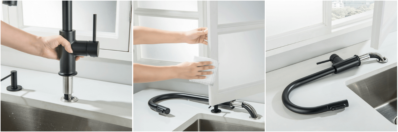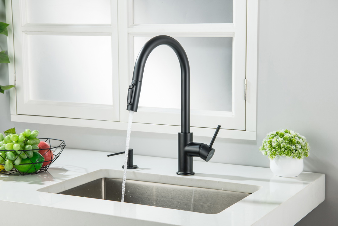 Matowa, czarna powierzchnia baterii nada wnętrzu wyrazisty, nowoczesny charakter. Idealnie wkomponuje się do kuchni w stylu industrialnym, loftowym czy minimalistycznym.