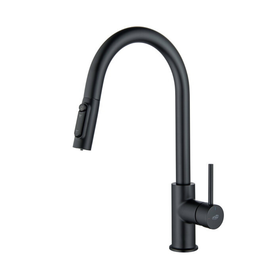 DIANA w kolorze czarny mat to nowoczesna, wygodna i funkcjonalna bateria podokienna kładziona. Wyposażona w wyciąganą wylewkę z dwoma przyciskami - do zmiany rodzaju strumienia i uruchamiania wody filtrowanej – daje pełną kontrolę nad przepływem.