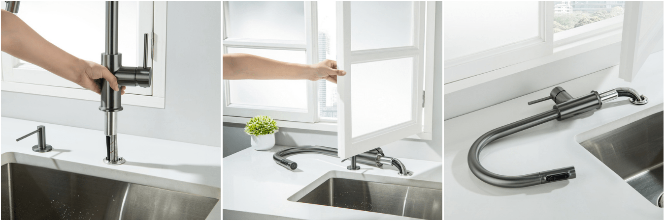 Zastosowany w baterii system podokienny typu „window” powstał z myślą o kuchniach, gdzie zlew umieszczony jest tuż pod oknem, a klasyczna bateria kolidowałaby z jego otwieraniem.