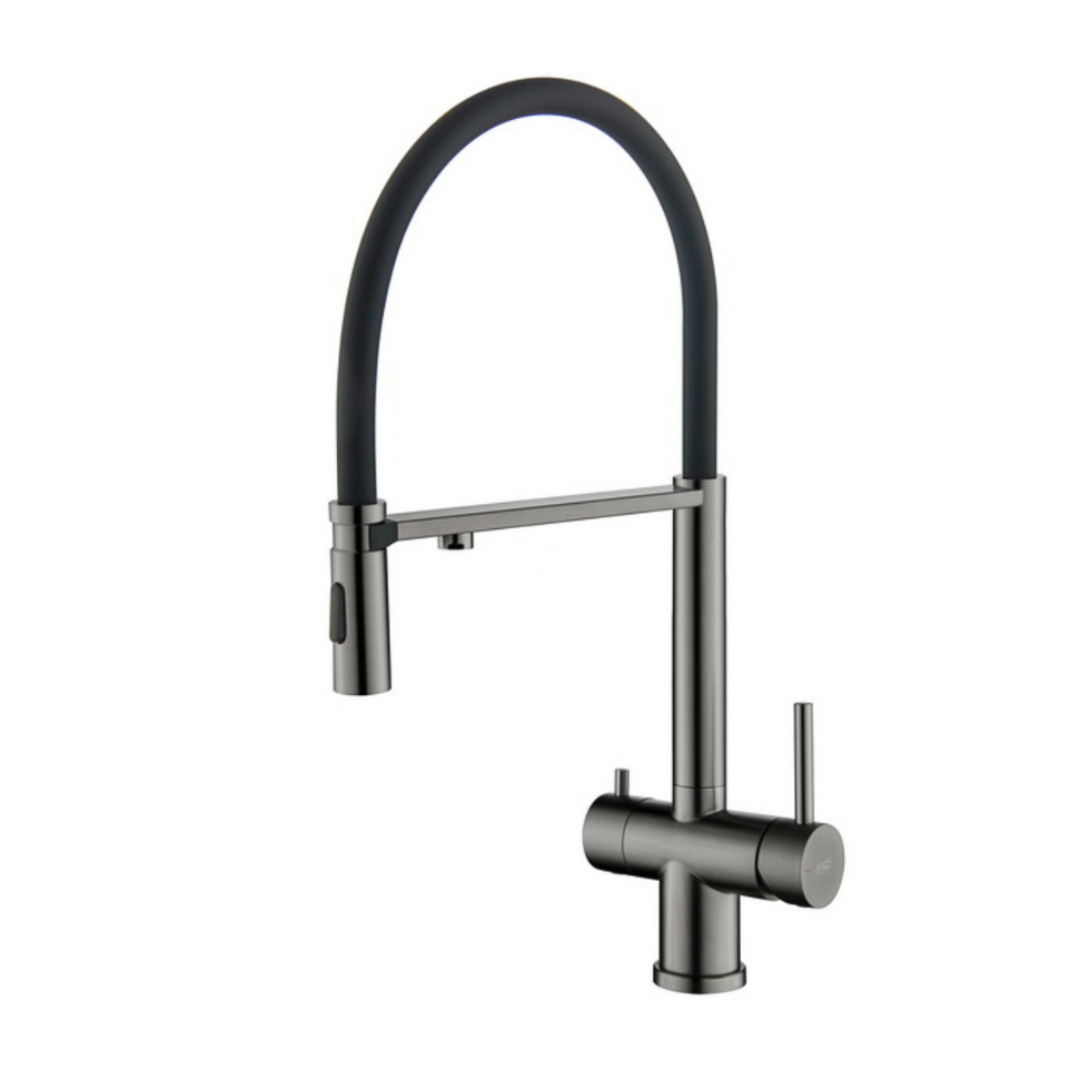 Model Tusar stanowi doskonały przykład połączenia innowacyjnych rozwiązań, wygody użytkowania i ponadczasowego designu. Ta trójdrożna bateria kuchenna z wyciąganą wylewką umożliwia podłączenie do systemu filtracji wody. Dzięki temu korzystasz z wody ciepłej i zimnej z sieci, jak i czystej wody filtrowanej z jednego kranu! Dwuobwodowe połączenie zapewnia pełną separację wody z sieci i wody z filtra.