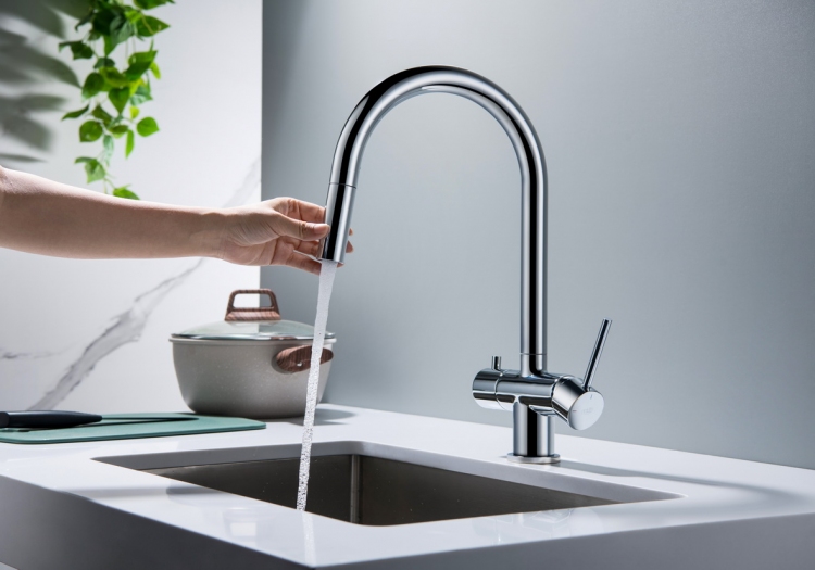 Bateria kuchenna Blue Water CYRUS to doskonałe połączenie nowoczesnego designu i wyjątkowej funkcjonalności. Baterię CYRUS wyróżnia praktyczna wysuwana wylewka. Dzięki swobodnej regulacji wylewki dotrzesz do trudno dostępnych w swoim zlewie.