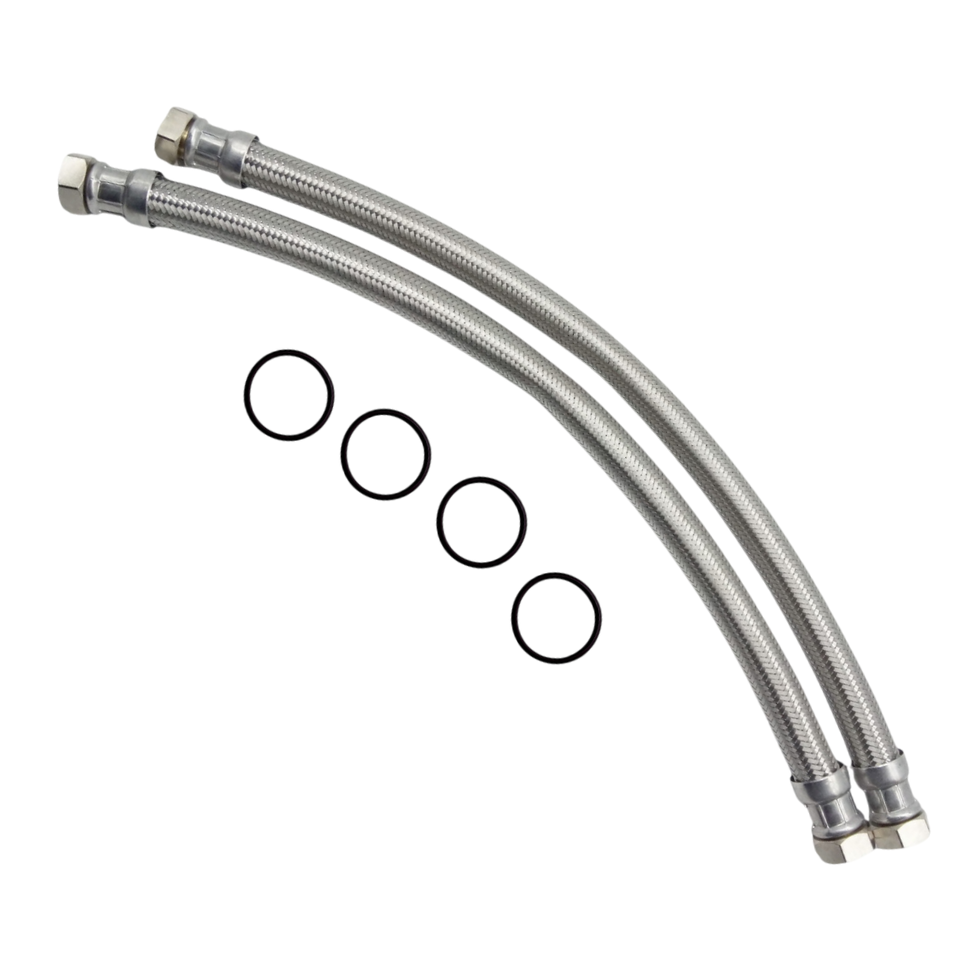 Otrzymujesz dwa węże zbrojone (o długości 700mm każdy), które zapewniają niezbędną elastyczność. Dzięki temu podłączenie zmiękczacza do sieci wodociągowej staje się sprawniejsze i łatwiejsze, zarówno podczas pierwszej instalacji, jak i późniejszych prac konserwacyjnych.