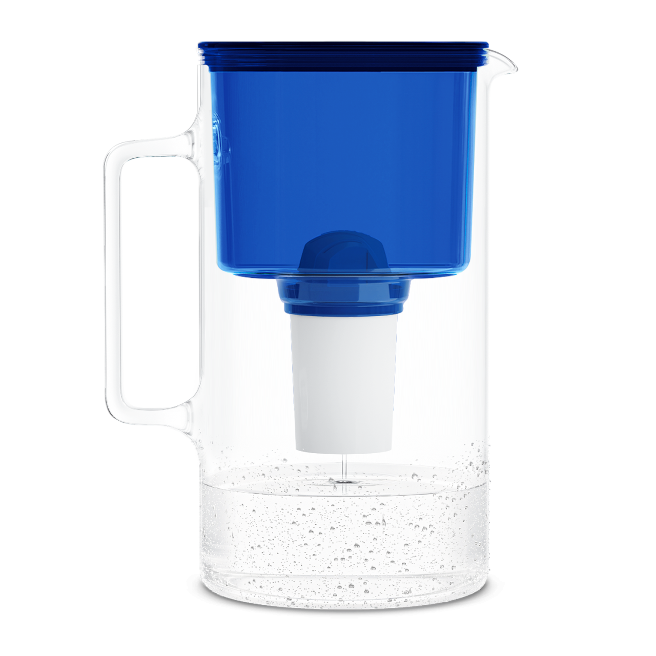 Odporność na szoki termiczne i brak reakcji z wodą eliminują ryzyko uwalniania mikroplastiku - problem powszechny w tradycyjnych dzbanach z tworzywa. Szklany korpus można myć w zmywarce. Pokrywkę i wkład wystarczy opłukać ręcznie w temperaturze nieprzekraczającej 50 °C. Głęboki granat pokrywki Navy Blue wyróżnia się na tle standardowych wariantów kolorystycznych i spójnie uzupełnia zarówno jasne, jak i ciemne aranżacje kuchenne.