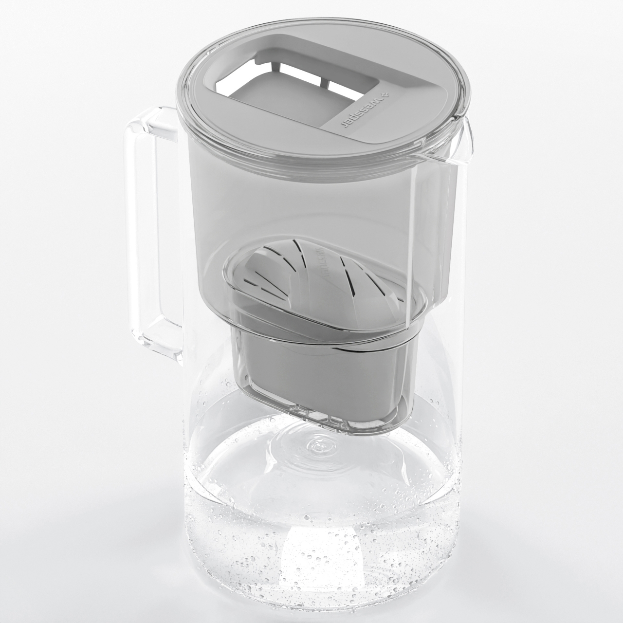 Wessper D2 BOROSILICATE w kolorze szarym to szklany dzbanek do filtrowania wody o pojemności 3 litrów z polskiego szkła borokrzemowego klasy laboratoryjnej. Jeden cykl filtracji dostarcza 1,9 l wody pozbawionej chloru, metali ciężkich i związków organicznych. W opakowaniu z dzbankiem otrzymasz filtr Wessper Aquamax z 95-gramowym złożem węglowo-jonowymiennym, najwyższa deklarowana masa wkładu w tej klasie dzbanków.