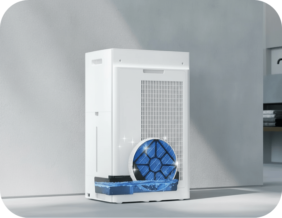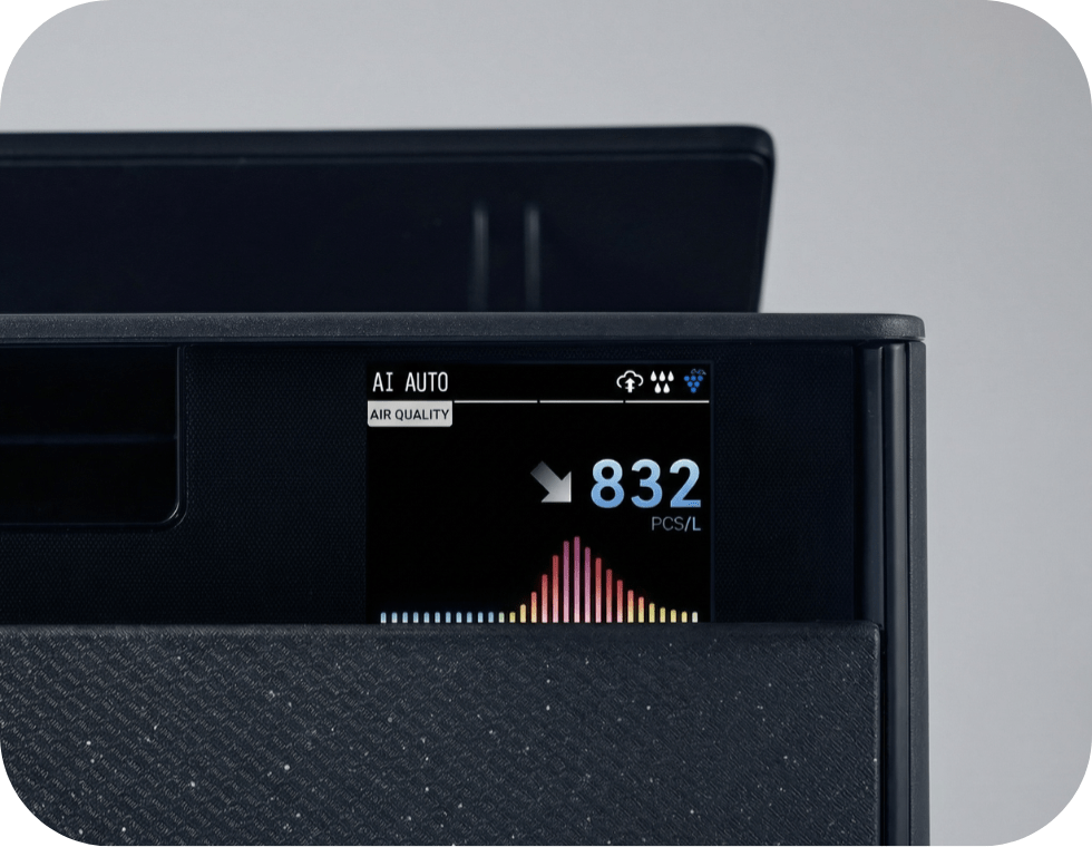 - Automatyczna żaluzja: Chroni wnętrze urządzenia przed kurzem, gdy oczyszczacz jest wyłączony.