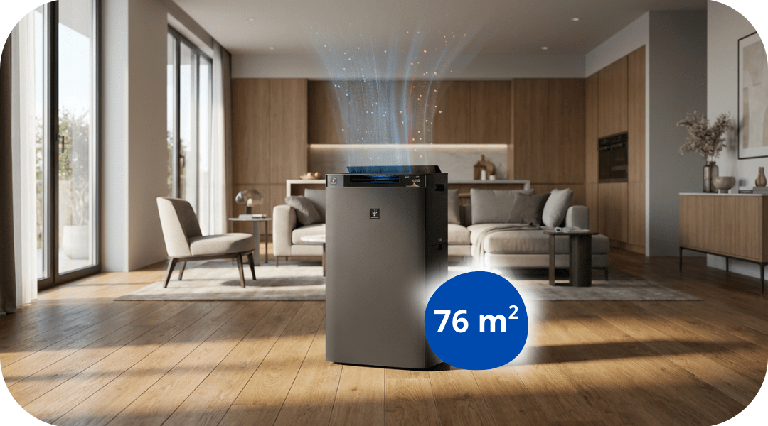 Sharp KI-TX100EU-H w eleganckim odcieniu Charcoal Grey zaprojektowano z myślą o oczyszczaniu powierzchni do 76 m². Urządzenie generuje przepływ powietrza 600 m³/h, nawilża z wydajnością 1100 ml/h i emituje 50 000 jonów/cm³ dzięki technologii Plasmacluster NEXT. Pięć precyzyjnych czujników w połączeniu z algorytmami AI zapewnia automatyczną regulację pracy w oparciu o rzeczywiste warunki w pomieszczeniu.