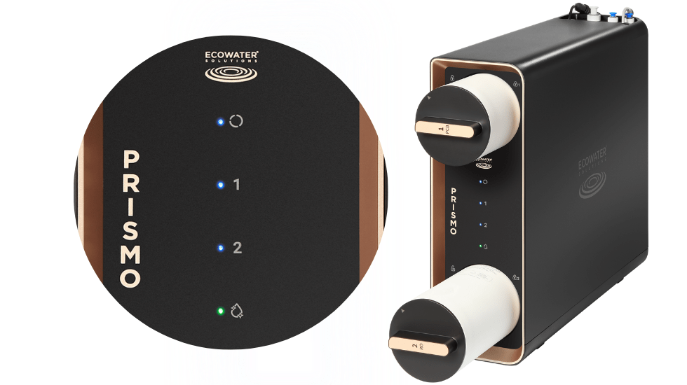 PRISMO od EcoWater eliminuje te problemy, wykorzystując technologię odwróconej osmozy. Ten bezzbiornikowy filtr RO działa w pełni automatycznie i niemal bezgłośnie. Wbudowany wskaźnik LED sygnalizuje moment, w którym należy wymienić wkład filtrujący.