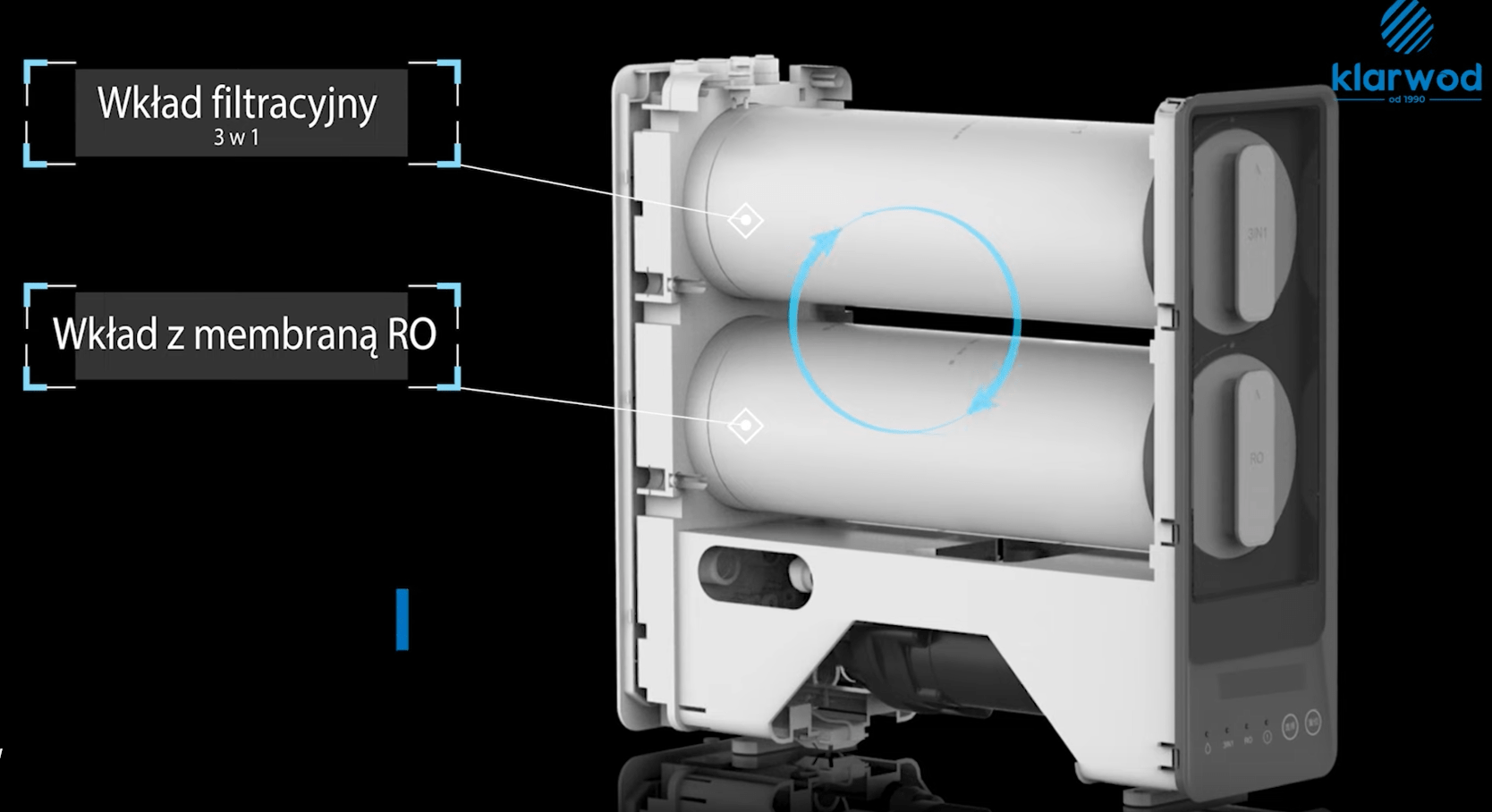 Mimo małych gabarytów, filtr odwróconej osmozy Klarwod UX6-600G zapewnia pełną kontrolę przed zanieczyszczeniami. Wewnątrz urządzenia znajdują się tylko dwa wkłady: hybrydowy, trójwarstwowy wkład PCF oraz membrana osmotyczna.