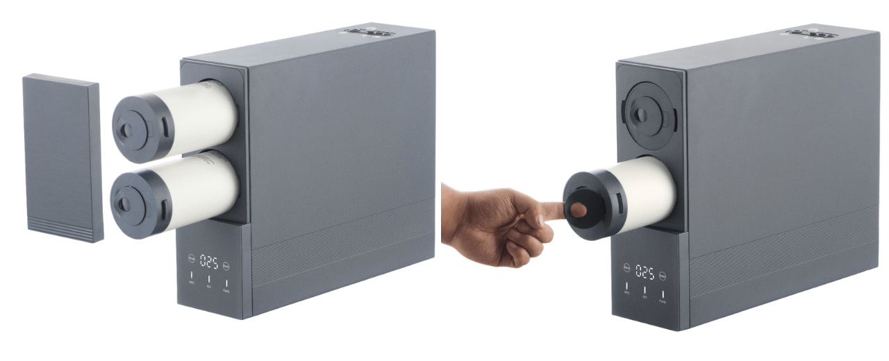 Dostęp do wkładów znajduje się od frontu obudowy, co skraca czynności serwisowe do kilku minut. Nie trzeba przenosić urządzenia ani odłączać przewodów, a czynności konserwacyjne są bardzo proste.