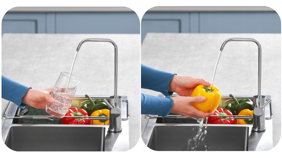 System oferuje wybór pomiędzy dwoma rodzajami wody, dostępnymi z jednej, dedykowanej baterii kuchennej. Przełączanie odbywa się mechanicznie, przy pomocy wygodnej dźwigni.