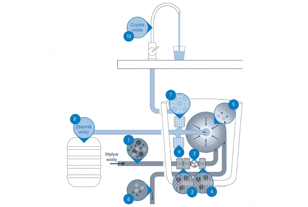 - pięciostopniowa filtracja z odwróconą osmozą i mineralizacją,